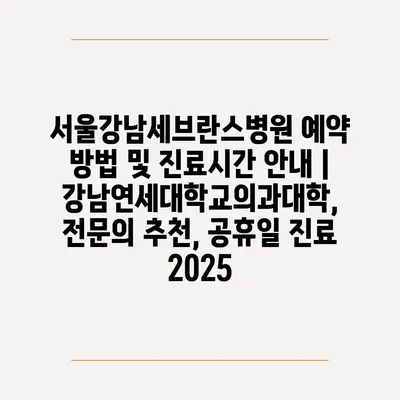 ✅ 서울강남세브란스병원 예약 방법을 상세히 알아보세요.
