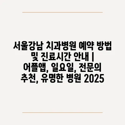 서울강남 치과병원 예약 방법 및 진료시간 공지 | 어플앱, 일요일, 전연락 추천, 유명한 병원 2025에 대한 내용을 소개합니다.