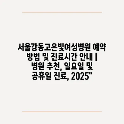 서울강동고은빛여성병원 예약 방법 및 진료시간 안내 | 병원 추천, 일요일 및 공휴일 진료, 2025″