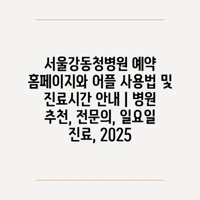 서울강동청병원 예약 홈페이지와 어플 사용법 및 진료시간 공지 | 병원 추천, 전연락, 일요일 진료, 2025 에 대해 자주 묻는 질문 TOP 5