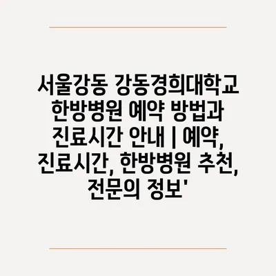 서울강동 강동경희대학교 한방병원 예약 방법과 진료시간 공지 | 예약, 진료시간, 한방병원 추천, 전연락 정보’에 대해 자주 묻는 질문 TOP 5