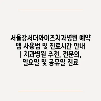 서울강서더와이즈치과병원 예약 앱 사용법 및 진료시간 안내 | 치과병원 추천, 전문의, 일요일 및 공휴일 진료