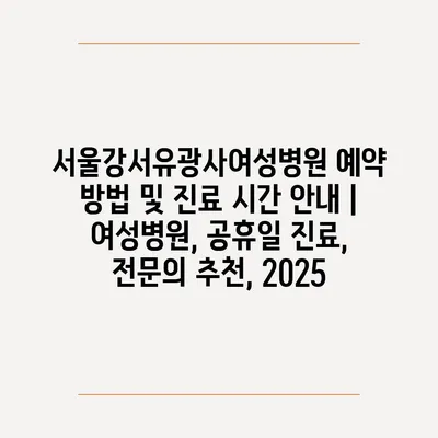 서울강서유광사여성병원 예약 방법 및 진료 시간 공지 | 여성병원, 공휴일 진료, 전연락 추천, 2025에 대해 자주 묻는 질문 TOP 5