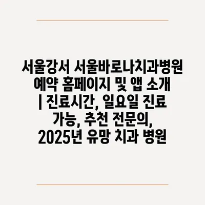 서울강서 서울바로나치과병원 예약 홈페이지 및 앱 소개 | 진료시간, 일요일 진료 가능, 추천 전연락, 2025년 유망 치과 병원 에 대해 자주 묻는 질문 TOP 5
