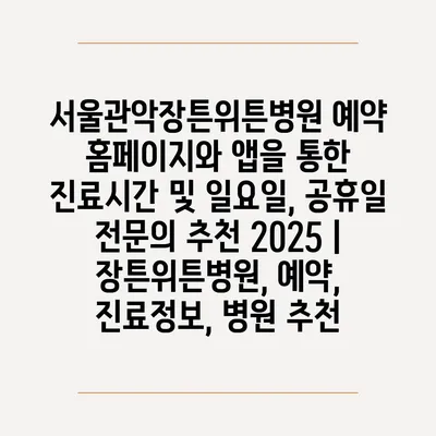 서울관악장튼위튼병원 예약 홈페이지와 앱을 통한 진료시간 및 일요일, 공휴일 전연락 추천 2025 | 장튼위튼병원, 예약, 진료정보, 병원 추천 에 대해 자주 묻는 질문 TOP 5