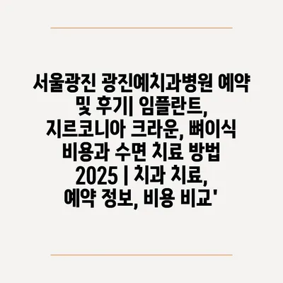 서울광진 광진예치과병원 예약 및 후기| 임플란트, 지르코니아 크라운, 뼈이식 비용과 수면 치료 방법 2025 | 치과 치료, 예약 정보, 비용 비교’ 에 대해 자주 묻는 질문 TOP 5