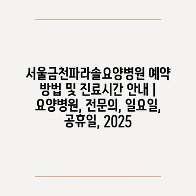 ✅ 서울금천파라솔요양병원의 진료시간과 예약 방법을 알아보세요.