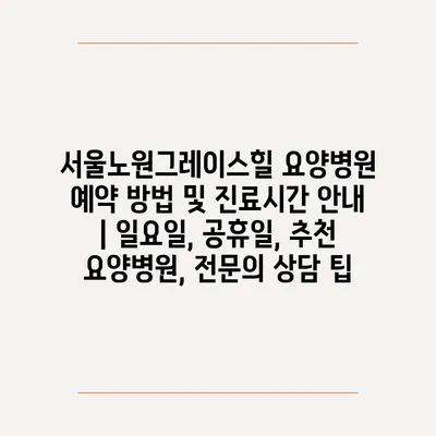 서울노원그레이스힐 요양병원 예약 방법 및 진료시간 공지 | 일요일, 공휴일, 추천 요양병원, 전연락 상담 팁 에 대해 자주 묻는 질문 TOP 5