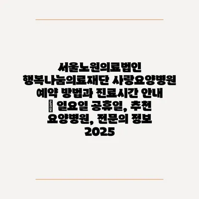 서울노원의료법인 행복나눔의료재단 사랑요양병원 예약 방법과 진료시간 공지 | 일요일 공휴일, 추천 요양병원, 전연락 정보 2025 에 대해 자주 묻는 질문 TOP 5