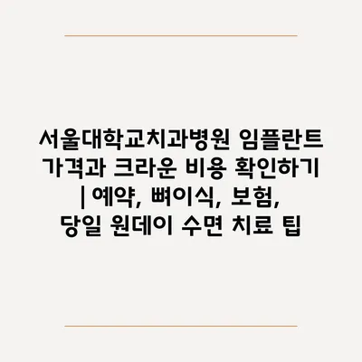 서울대학교치과병원 임플란트 가격과 크라운 비용 확인하기 | 예약, 뼈이식, 보험, 당일 원데이 수면 치료 팁