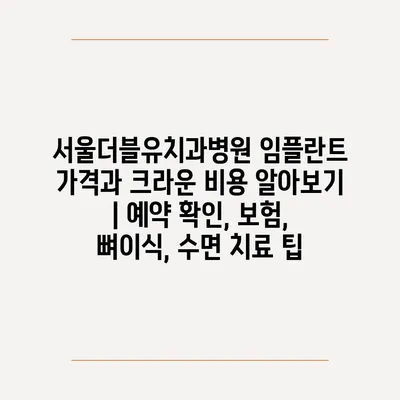 서울더블유치과병원 임플란트 가격과 크라운 비용 알아보기 | 예약 확인, 보험, 뼈이식, 수면 치료 팁