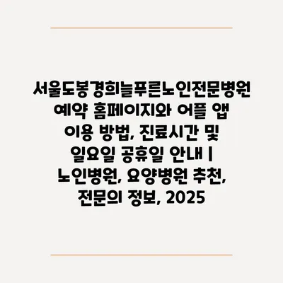 서울도봉경희늘푸른노인전문병원 예약 홈페이지와 어플 앱 이용 방법, 진료시간 및 일요일 공휴일 공지 | 노인병원, 요양병원 추천, 전연락 정보, 2025 에 대해 자주 묻는 질문 TOP 5
