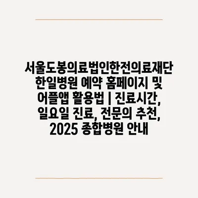 서울도봉의료법인한전의료재단 한일병원 예약 홈페이지 및 어플앱 활용법 | 진료시간, 일요일 진료, 전연락 추천, 2025 종합병원 공지 에 대해 자주 묻는 질문 TOP 5