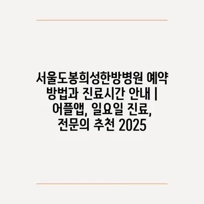 서울도봉희성한방병원 예약 방법과 진료시간 공지 | 어플앱, 일요일 진료, 전연락 추천 2025 에 대해 자주 묻는 질문 TOP 5