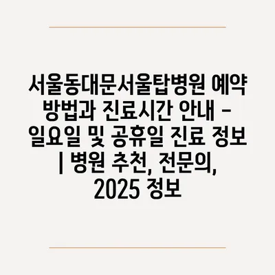서울동대문서울탑병원 예약 방법과 진료시간 공지 – 일요일 및 공휴일 진료 정보 | 병원 추천, 전연락, 2025 정보 에 대해 자주 묻는 질문 TOP 5