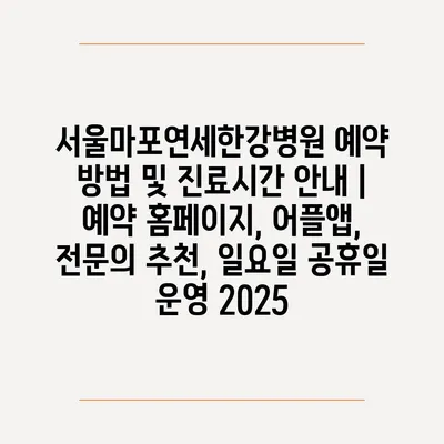 서울마포연세한강병원 예약 방법 및 진료시간 안내 | 예약 홈페이지, 어플앱, 전문의 추천, 일요일 공휴일 운영 2025