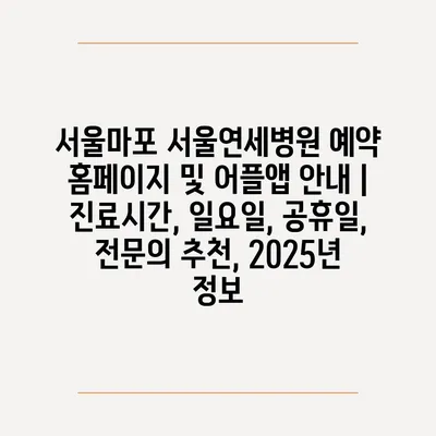 서울마포 서울연세병원 예약 홈페이지 및 어플앱 공지 | 진료시간, 일요일, 공휴일, 전연락 추천, 2025년 정보 에 대해 자주 묻는 질문 TOP 5
