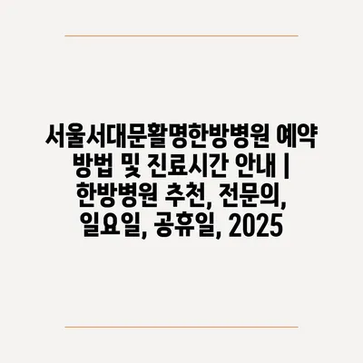 서울서대문활명한방병원 예약 방법 및 진료시간 공지 | 한방병원 추천, 전연락, 일요일, 공휴일, 2025 에 대해 자주 묻는 질문 TOP 5