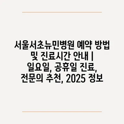 서울서초뉴민병원 예약 방법 및 진료시간 안내 | 일요일, 공휴일 진료, 전문의 추천, 2025 정보