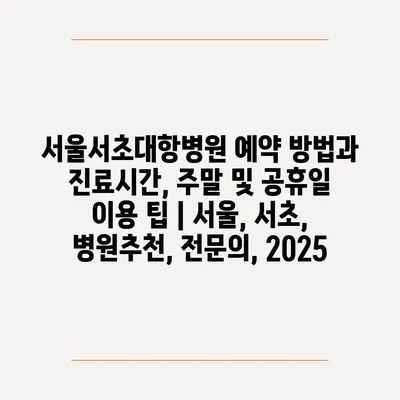 서울서초대항병원 예약 방법과 진료시간, 주말 및 공휴일 이용 팁 | 서울, 서초, 병원추천, 전연락, 2025에 대해 알아보겠습니다.