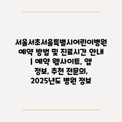 서울서초서울특별시어린이병원 예약 방법 및 진료시간 공지 | 예약 웹사이트, 앱 정보, 추천 전연락, 2025년도 병원 정보 에 대해 자주 묻는 질문 TOP 5