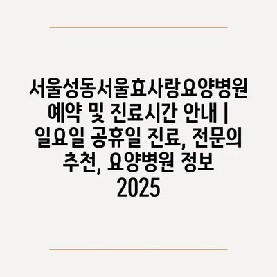 서울성동서울효사랑요양병원 예약 및 진료시간 공지 | 일요일 공휴일 진료, 전연락 추천, 요양병원 정보 2025 에 대해 자주 묻는 질문 TOP 5