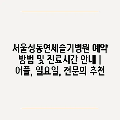✅ 서울성동연세슬기병원 예약 방법을 자세히 알아보세요.