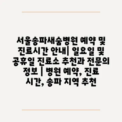 서울송파새숨병원 예약 및 진료시간 안내| 일요일 및 공휴일 진료소 추천과 전문의 정보 | 병원 예약, 진료 시간, 송파 지역 추천