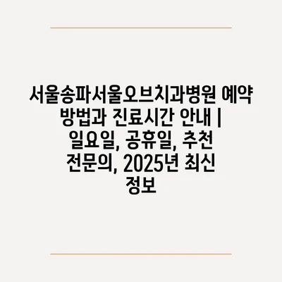 서울송파서울오브치과병원 예약 방법과 진료시간 공지 | 일요일, 공휴일, 추천 전연락, 2025년 최신 정보 에 대해 자주 묻는 질문 TOP 5