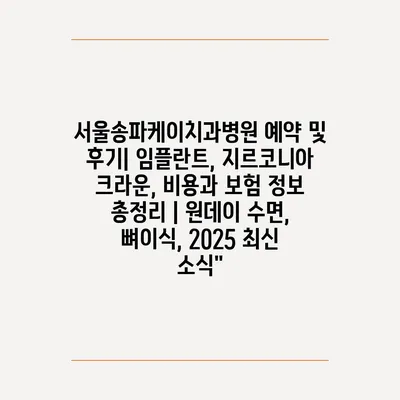서울송파케이치과병원 예약 및 후기| 임플란트, 지르코니아 크라운, 비용과 보험 정보 총정리 | 원데이 수면, 뼈이식, 2025 최신 소식에 대해 자주 묻는 질문 TOP 5
