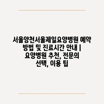 ✅ 서울양천서울제일요양병원 예약 방법을 손쉽게 알아보세요!