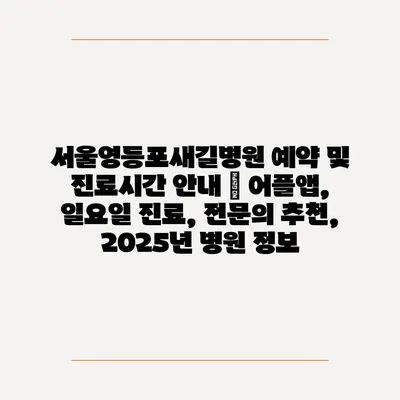서울영등포새길병원 예약 및 진료시간 공지 | 어플앱, 일요일 진료, 전연락 추천, 2025년 병원 정보 에 대해 자주 묻는 질문 TOP 5