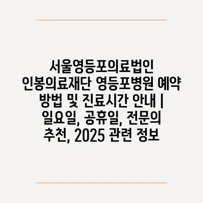 서울영등포의료법인 인봉의료재단 영등포병원 예약 방법 및 진료시간 공지 | 일요일, 공휴일, 전연락 추천, 2025 관련 정보 에 대해 자주 묻는 질문 TOP 5