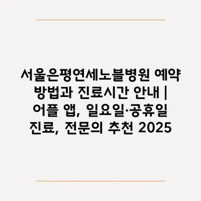 서울은평연세노블병원 예약 방법과 진료시간 안내 | 어플 앱, 일요일·공휴일 진료, 전문의 추천 2025