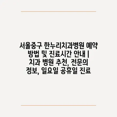 ✅ 서울중구 한누리치과병원의 진료시간과 예약 방법을 자세히 알아보세요.