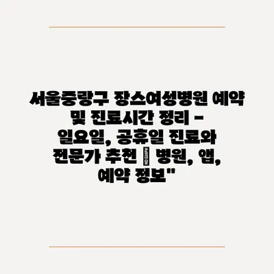서울중랑구 장스여성병원 예약 및 진료시간 정리 – 일요일, 공휴일 진료와 전문가 추천 | 병원, 앱, 예약 정보
