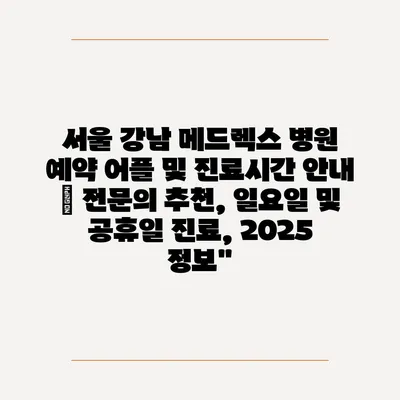 서울 강남 메드렉스 병원 예약 어플 및 진료시간 공지 | 전연락 추천, 일요일 및 공휴일 진료, 2025 정보에 대해 자주 묻는 질문 TOP 5