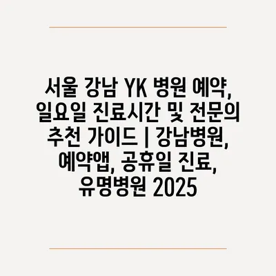 서울 강남 YK 병원 예약, 일요일 진료시간 및 전연락 추천 설명서 | 강남병원, 예약앱, 공휴일 진료, 유명병원 2025 에 대해 자주 묻는 질문 TOP 5