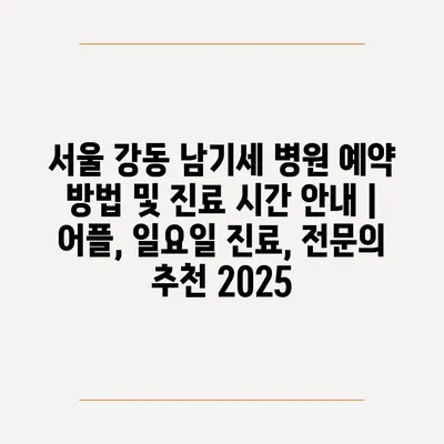 서울 강동 남기세 병원 예약 방법 및 진료 시간 공지 | 어플, 일요일 진료, 전연락 추천 2025 에 대해 자주 묻는 질문 TOP 5