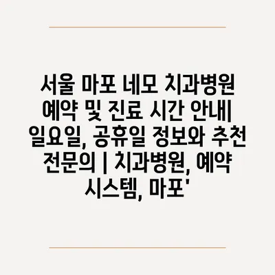 서울 마포 네모 치과병원 예약 및 진료 시간 공지| 일요일, 공휴일 정보와 추천 전연락 | 치과병원, 예약 시스템, 마포’ 에 대해 자주 묻는 질문 TOP 5