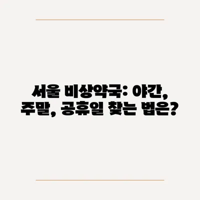💡 서울 비상약국의 위치와 운영시간을 쉽게 찾아보세요. 💡