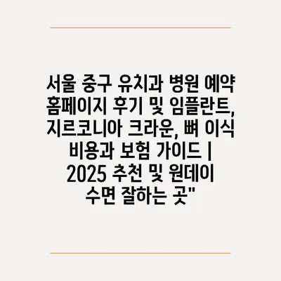 서울 중구 유치과 병원 예약 홈페이지 후기 및 임플란트, 지르코니아 크라운, 뼈 이식 비용과 보험 설명서 | 2025 추천 및 원데이 수면 잘하는 곳