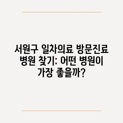 서원구 일차의료 방문진료 병원 찾기: 어떤 병원이 가장 좋을까?