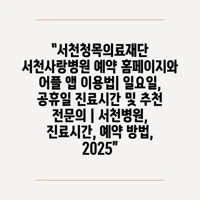 “서천청목의료재단 서천사랑병원 예약 홈페이지와 어플 앱 이용법| 일요일, 공휴일 진료시간 및 추천 전연락 | 서천병원, 진료시간, 예약 방법, 2025”에 대해 자주 묻는 질문 TOP 5