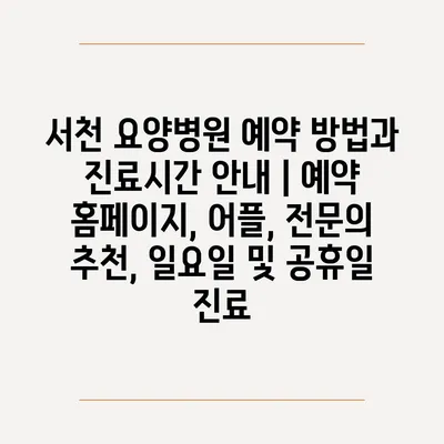✅ 서천 요양병원의 예약 방법과 진료시간을 간편하게 확인해 보세요.