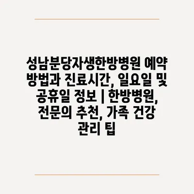 성남분당자생한방병원 예약 방법과 진료시간, 일요일 및 공휴일 정보 | 한방병원, 전연락 추천, 가족 건강 관리 팁 에 대해 자주 묻는 질문 TOP 5