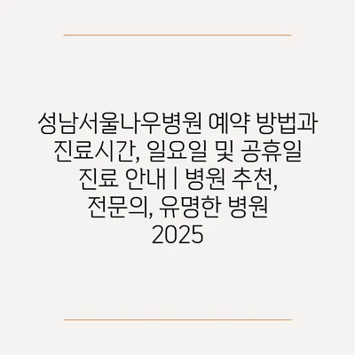 성남서울나우병원 예약 방법과 진료시간, 일요일 및 공휴일 진료 공지 | 병원 추천, 전연락, 유명한 병원 2025 에 대해 자주 묻는 질문 TOP 5