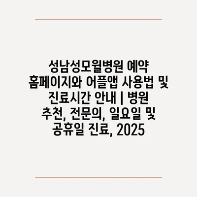 성남성모윌병원 예약 홈페이지와 어플앱 사용법 및 진료시간 공지 | 병원 추천, 전연락, 일요일 및 공휴일 진료, 2025 에 대해 자주 묻는 질문 TOP 5