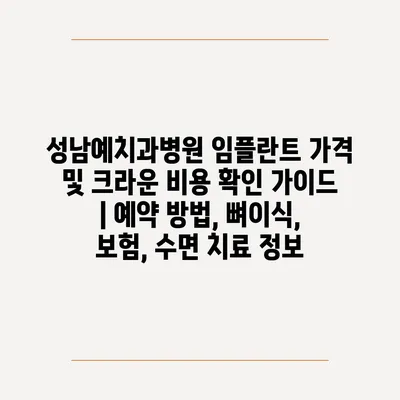성남예치과병원 임플란트 가격 및 크라운 비용 확인 설명서 | 예약 방법, 뼈이식, 보험, 수면 치료 정보