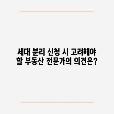 세대 분리 신청 시 고려해야 할 부동산 전문가의 의견은?